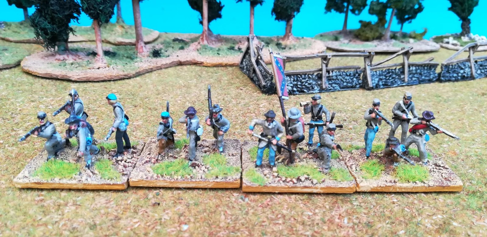 The smallest Brigade in the ANV was Lang's Brigade. Figures from all brands including some metal Irregular Miniatures.